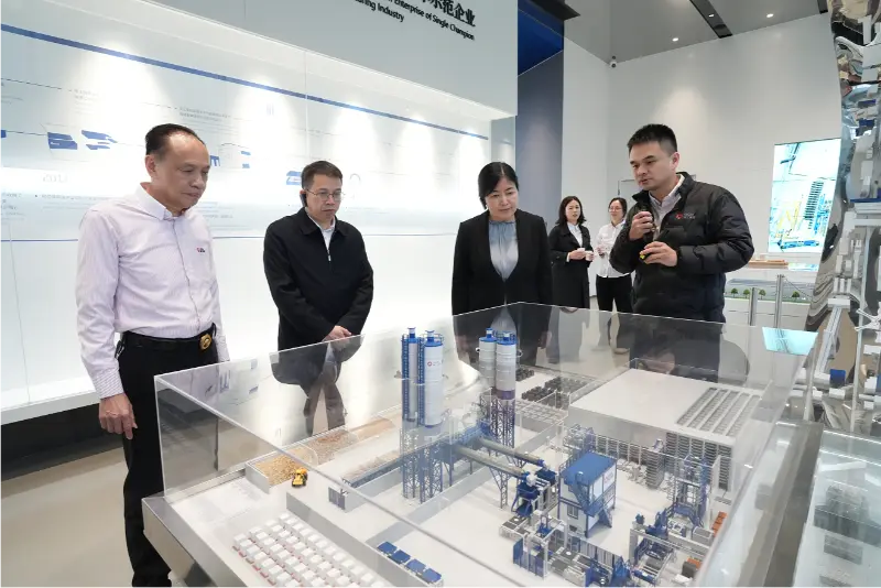 Nümayəndə heyəti əvvəlcə şirkətin Tarix Sərgi Zalı ilə tanış olub. Şirkət rəhbərlərinin rəhbərliyi altında onlar Quangong Machinery Co., Ltd.-nin qırx ildən artıq davam edən inkişaf səyahəti haqqında ətraflı məlumat əldə etdilər, şirkətin müxtəlif mükafatlarını, sertifikatlarını və texnoloji nailiyyətlərini araşdırdılar. Nümayəndə heyəti şirkəti istehsala əsas sənaye kimi sadiqliyinə və davamlı innovasiya fəlsəfəsinə görə təqdir edərək, onu özəl iqtisadiyyatın daha geniş inkişafının parlaq mikrokosmosu kimi qəbul edib.