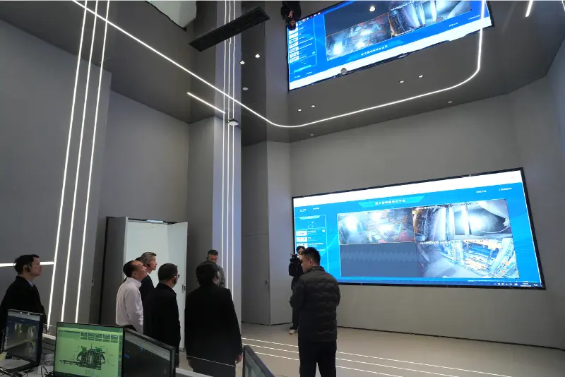 Daha sonra təftiş qrupu platformanın funksionallığı və əməliyyat effektivliyi haqqında ətraflı məlumat əldə etmək üçün "Quangong İntellektual Avadanlıq Bulud Xidməti Platforması"nın idarəetmə mərkəzinə baş çəkib. Ən qabaqcıl texnologiyalardan istifadə edərək, bu platforma bütün dünyada müştərilər üçün avadanlıqların onlayn monitorinqi və uzaqdan istismar və texniki xidmət daxil olmaqla, sona qədər xidmətlər təqdim edir və bununla da satışdan sonrakı xidmətin səmərəliliyini əhəmiyyətli dərəcədə artırır. Platforma Xidmət yönümlü İstehsal üçün Milli Səviyyəli Nümayiş Layihəsi kimi tanınıb. Cənab Liu Min şirkətin rəqəmsal transformasiya təşəbbüslərini bəyəndiyini bildirdi və firmanı texnoloji innovasiyalara investisiyalarını daha da artırmağa təşviq etdi.